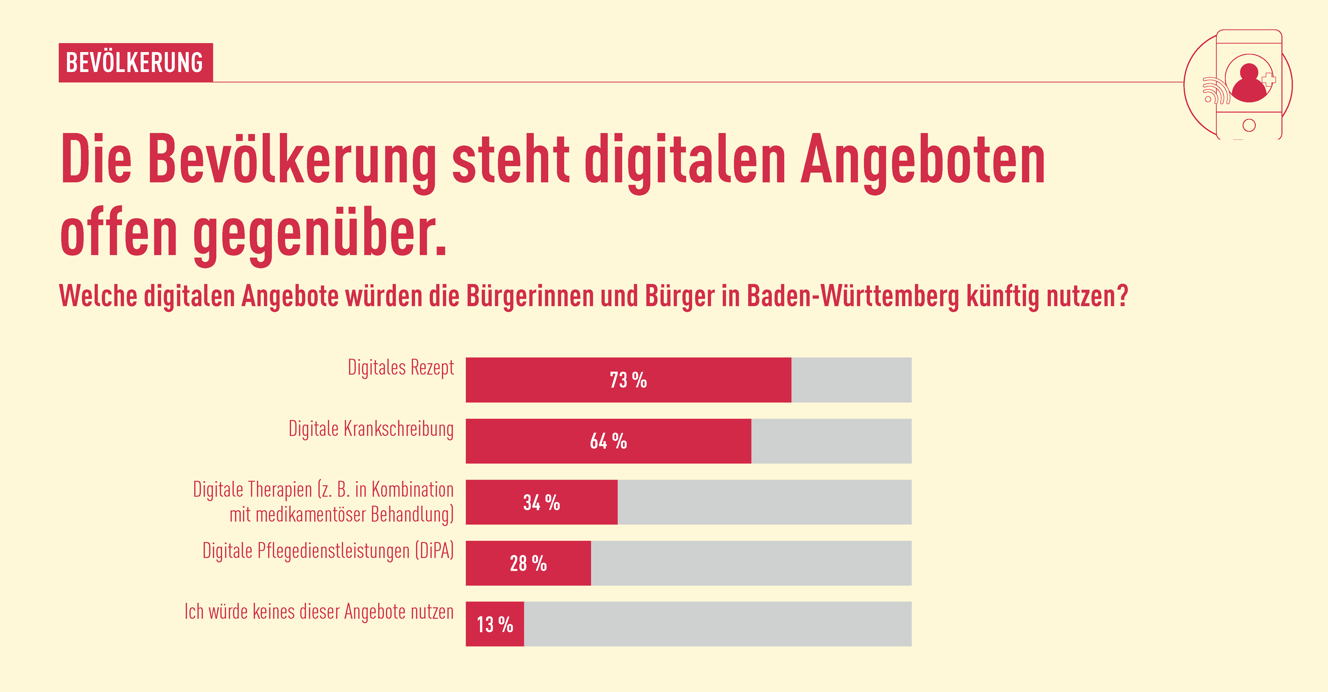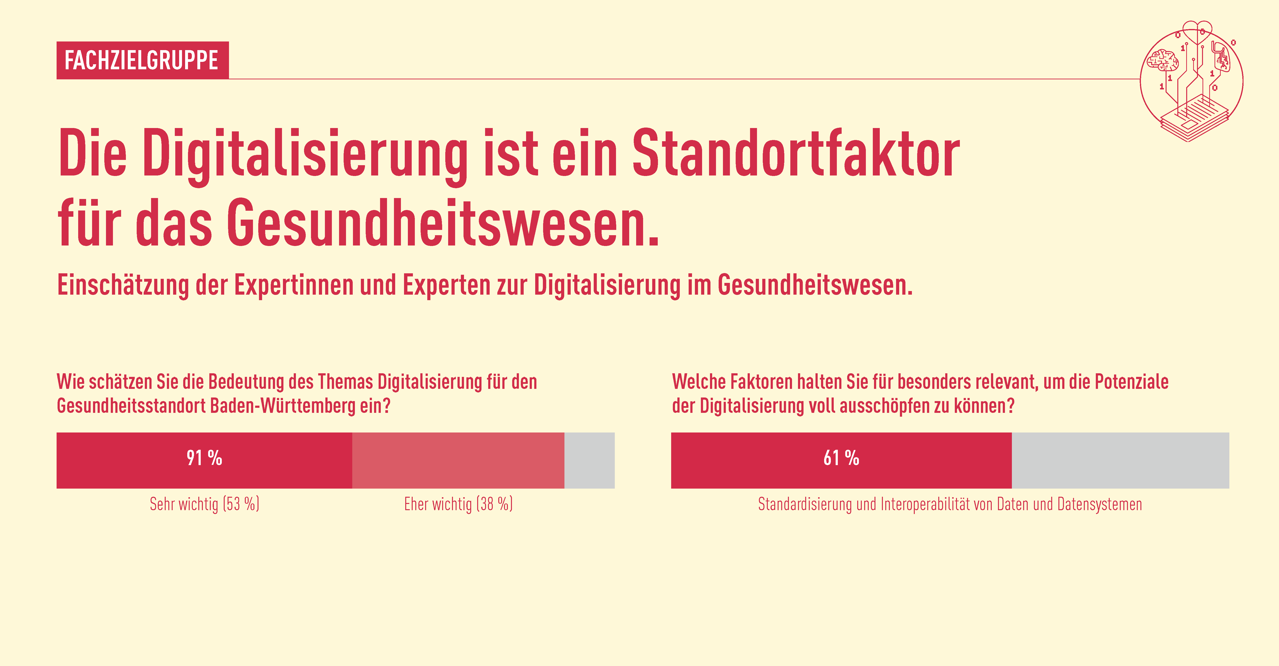 © Staatsministerium Baden-Württemberg„Die Ergebnisse der Umfrage bestätigen uns, dass wir mit dem Forum Gesundheitsstandort Baden-Württemberg den richtigen Nerv getroffen haben. Im Rahmen des Forums treiben wir die Themen voran, die den Bürgerinnen und Bürgern und den Fachkräften wichtig sind: der breite Zugang zu Spitzenmedizin und der Erhalt der hohen Qualität in der Versorgung, die bestmögliche Vernetzung aller Akteurinnen und Akteure am Standort und gute Rahmenbedingungen, um das Potenzial der Digitalisierung für den medizinischen Fortschritt und für Innovationen voll auszuschöpfen. Die große Mehrheit der Bevölkerung stünde etwa der Nutzung von digitalen Angeboten sehr aufgeschlossen gegenüber. Für die Fachleute sind Bürokratieabbau, die Digitalisierung und die Vernetzung von Daten die Schlüsselherausforderungen. Eine bessere Nutzung von Gesundheitsdaten bringt die Landesregierung mit einer im März 2022 beschlossenen Roadmap Gesundheitsdatennutzung nun voran.“
