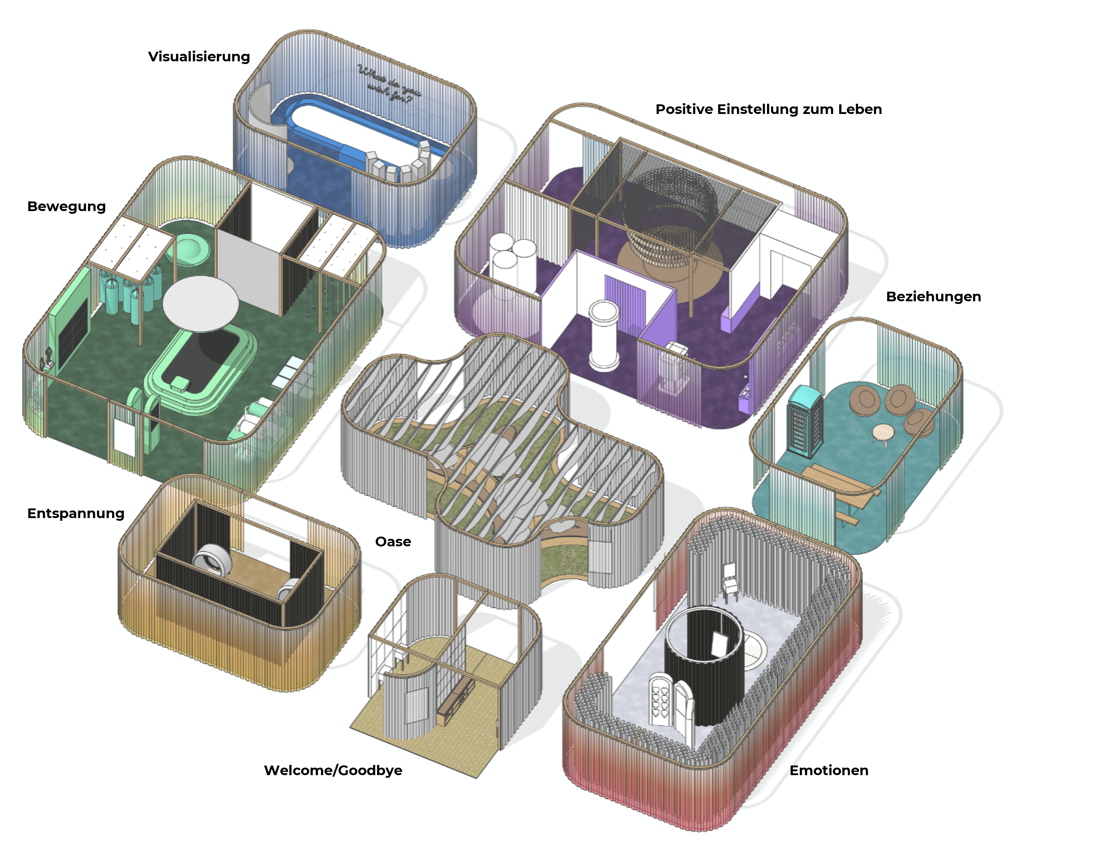 Der Besucher macht sich eigenständig auf Entdeckungsreise und wählt von den 26 einzigartigen Ausstellungsstücken diejenigen aus, die ihn interessieren, um eine persönliche Strategie, zur Stärkung der mentalen Gesundheit, zu entwickeln. Die interaktiven Exponate leiten den Besucher intuitiv an. Idealerweise implementiert der Besucher das Erlebte in den Alltag. Die Ausstellung ist als „Wanderausstellung“ konzipiert und soll deutschlandweit, im Ganzen oder in Teilen, vermietet werden. Aktuell sind wir auf der Suche nach den passenden Ausstellungsorten und sind dabei im Gespräch mit Science Centern und Museen.