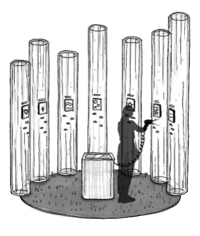 So ist beispielsweise eine Strategie zur Stärkung der mentalen Gesundheit „Lebensziele zu verwirklichen“. In der Ausstellung trifft der Besucher auf den Shop für positive Affirmationen. Hier kann der Besucher verschiedene Glaubenssätze in den „Einkaufswagen“ packen, die bei der Verwirklichung des Lebensziels helfen.